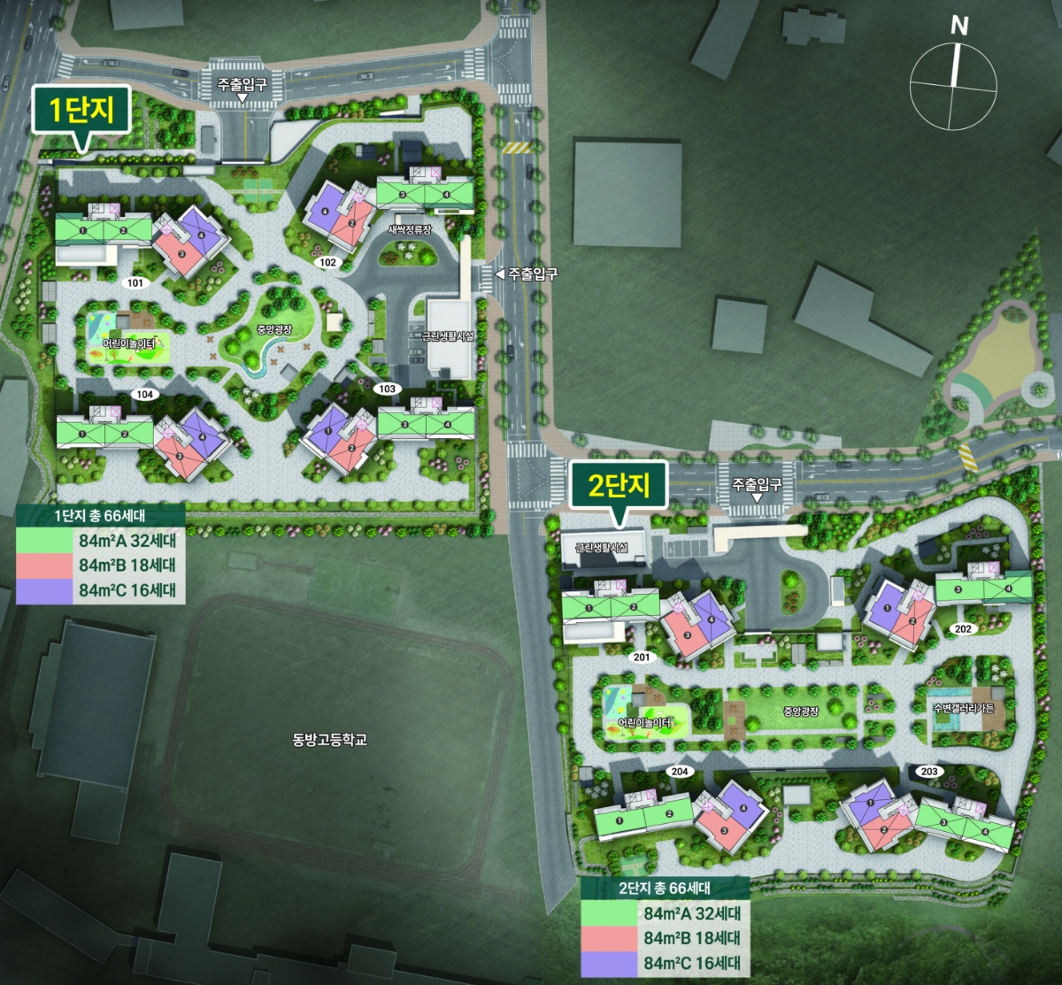 • 본 단지의 명칭, 동호수 표기, 외부 색채, 외관 디자인, 옥탑 디자인, 외부 조명시설, 태양광 발전 설비시설 등은 현장 여건 및 인허가 관청과의 심의, 협의 과정에서 향후 변경될 수 있습니다.